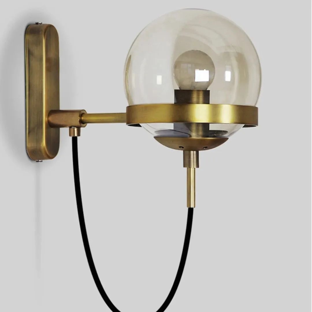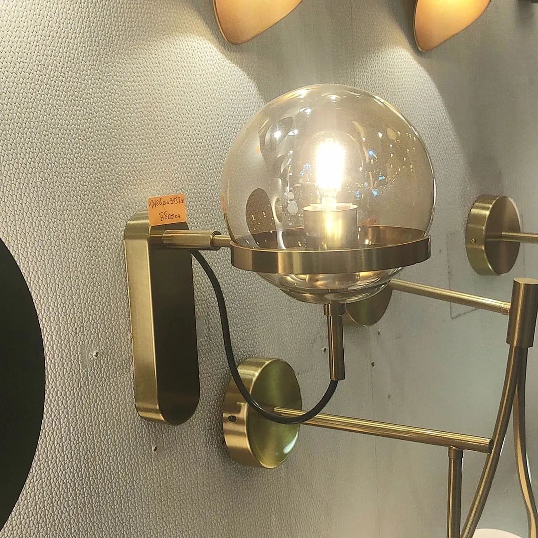 Sublimez vos murs avec cette applique murale de style rétro, alliant verre ambré et structure en métal doré.