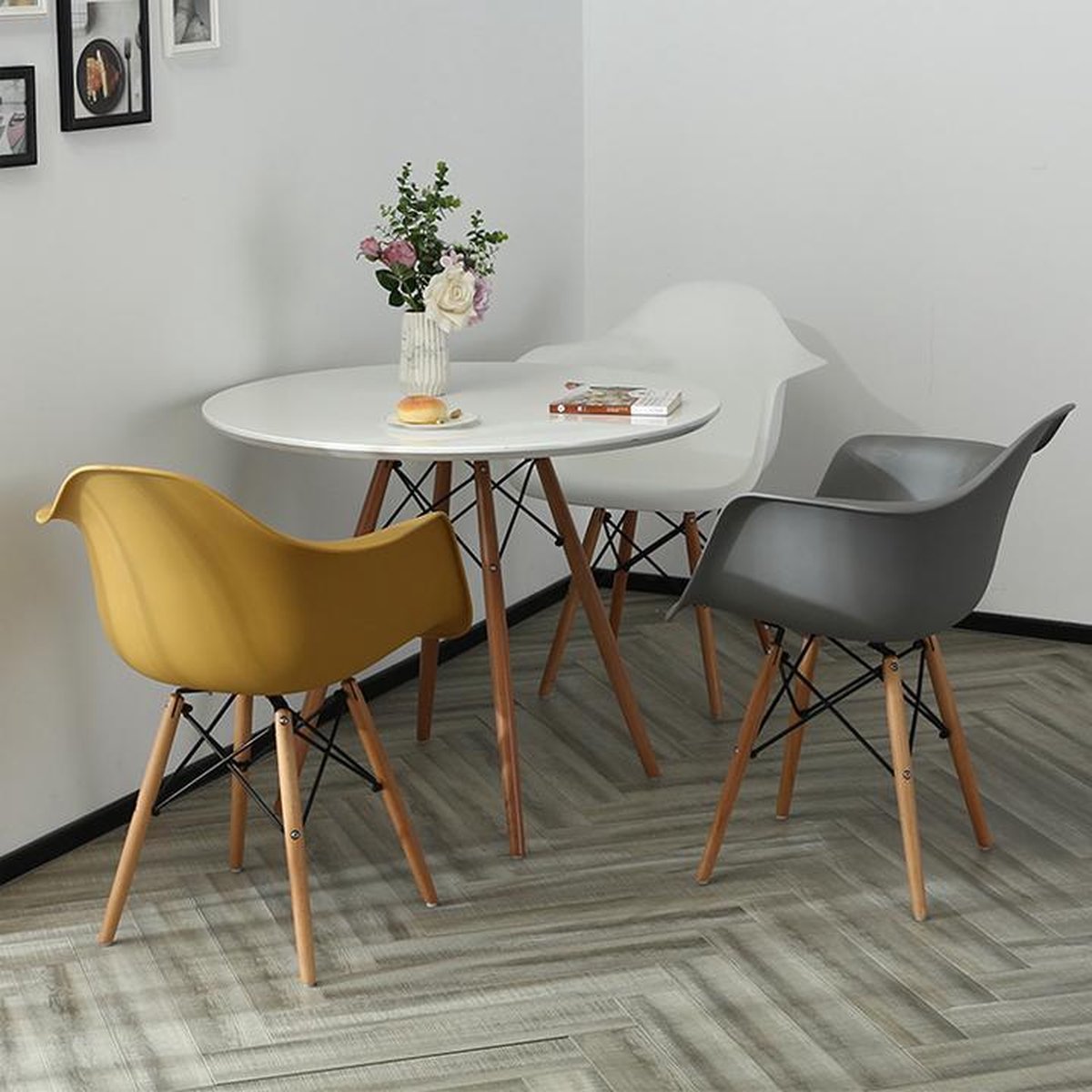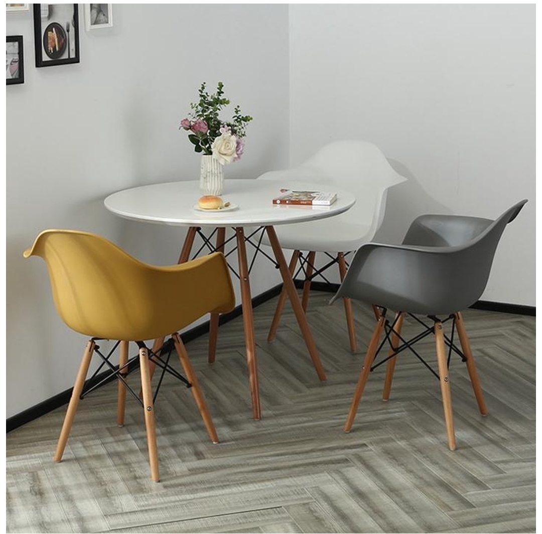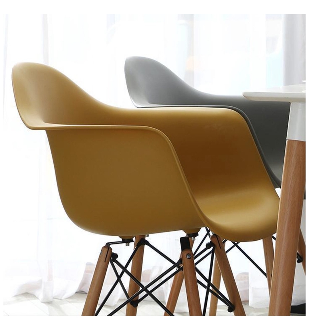 La chaise DAW est une icône du design scandinave et contemporain. Elle se distingue par son assise ergonomique en polypropylène robuste et facile d’entretien, associée à des pieds en bois de hêtre naturel qui assurent stabilité et élégance.