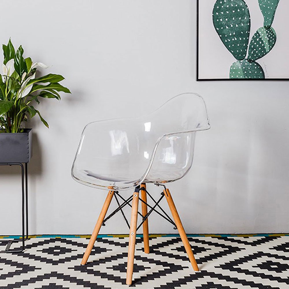 La chaise DAW transparente est parfaite pour ceux qui souhaitent un mobilier design sans alourdir la décoration. Son assise translucide associée au bois de hêtre crée un équilibre parfait entre modernité et chaleur naturelle.