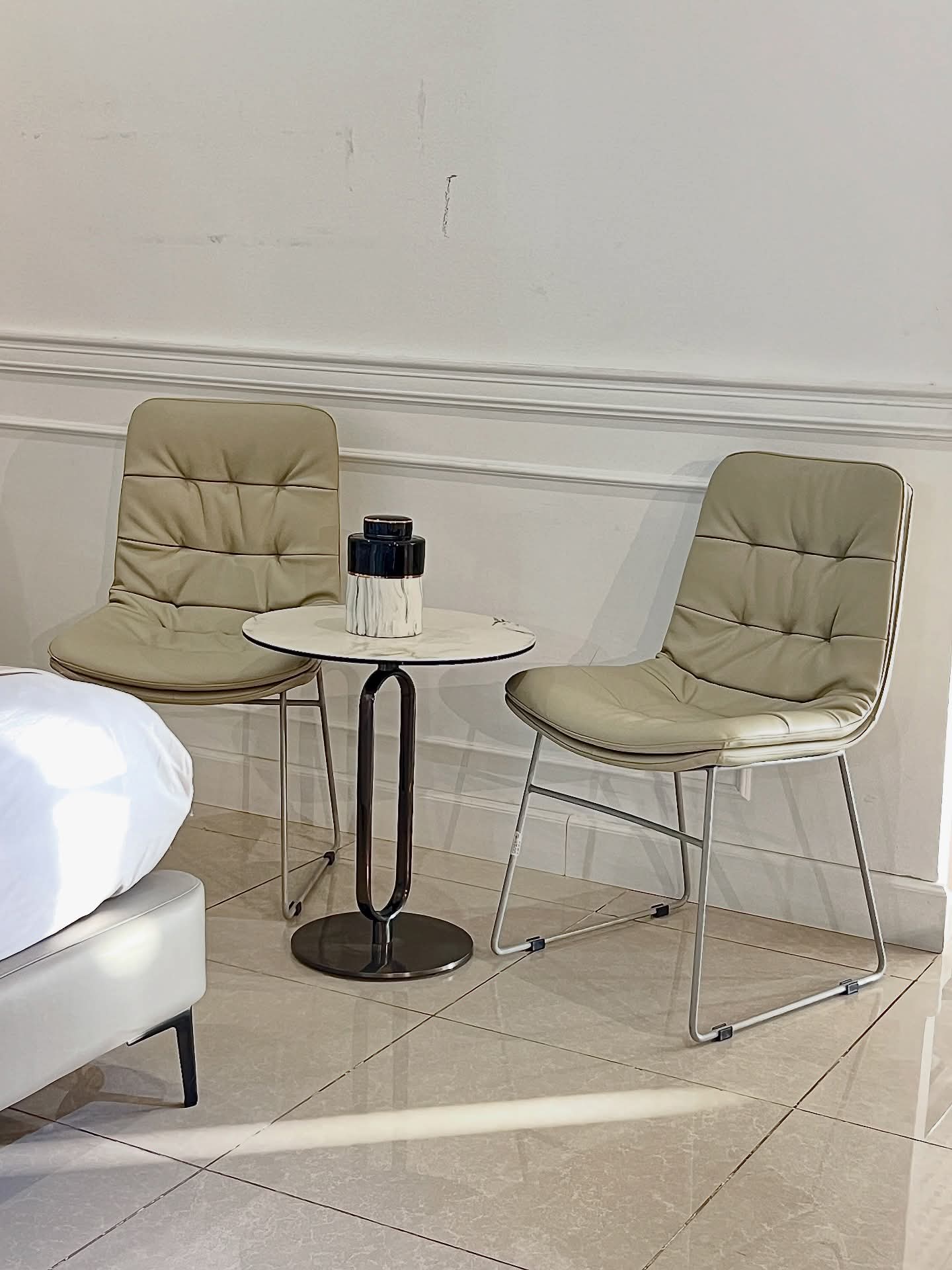 Disponible en gris, beige et vert, elle s’intègre parfaitement à tout style de salle à manger moderne.