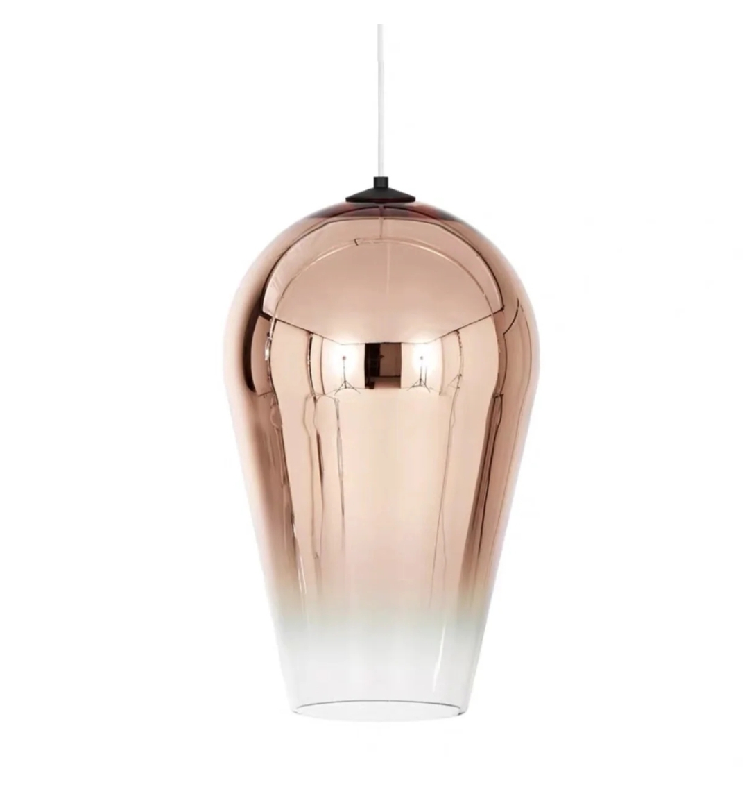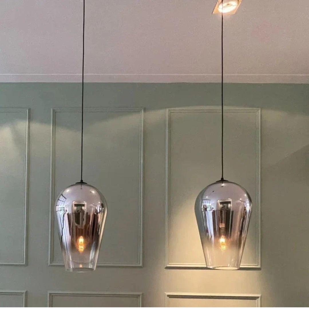 Conçue en verre soufflé avec un subtil dégradé de couleur du métal au transparent, elle diffuse une lumière douce et enveloppante, idéale pour créer une ambiance chaleureuse et moderne.