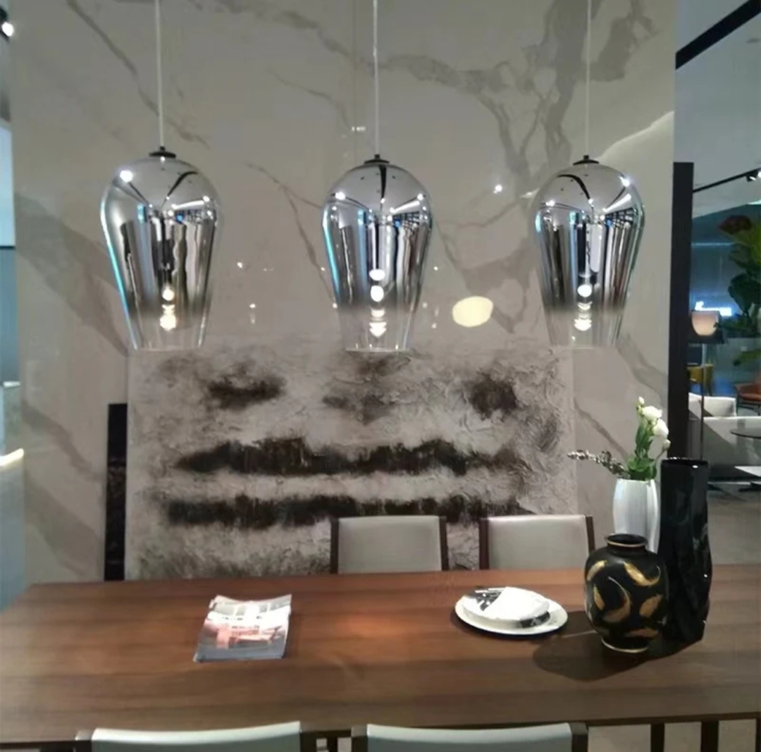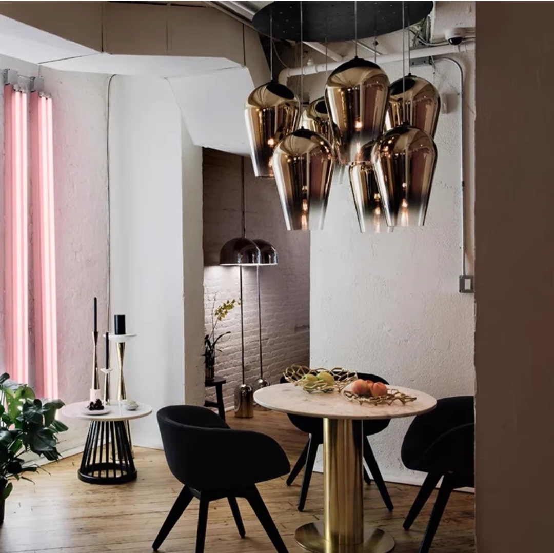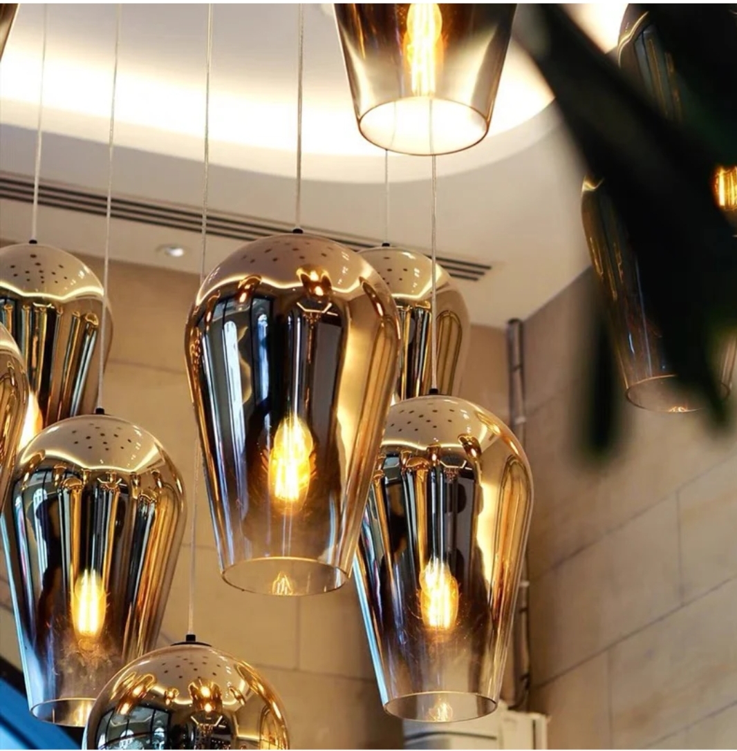 Disponible en trois finitions élégantes : dorée, chromée et rose gold, cette suspension design s’intègre parfaitement dans un salon, une salle à manger ou un espace commercial haut de gamme.
