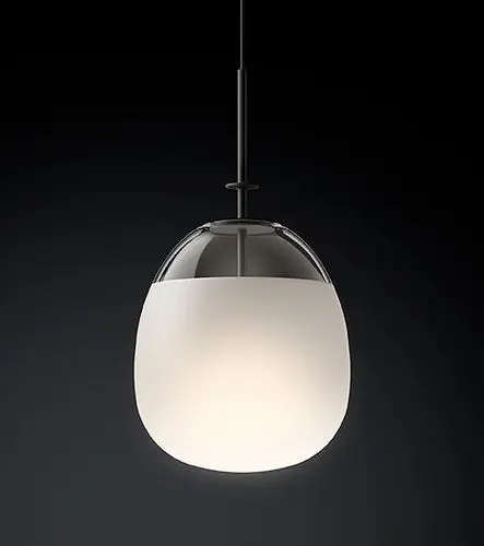 Finition Bicolore : L’abat-jour en verre blanc mat est élégamment rehaussé par des accents métalliques sombres (noirs ou gris anthracite) au niveau de la douille et de la tige, ajoutant un contraste moderne et raffiné.