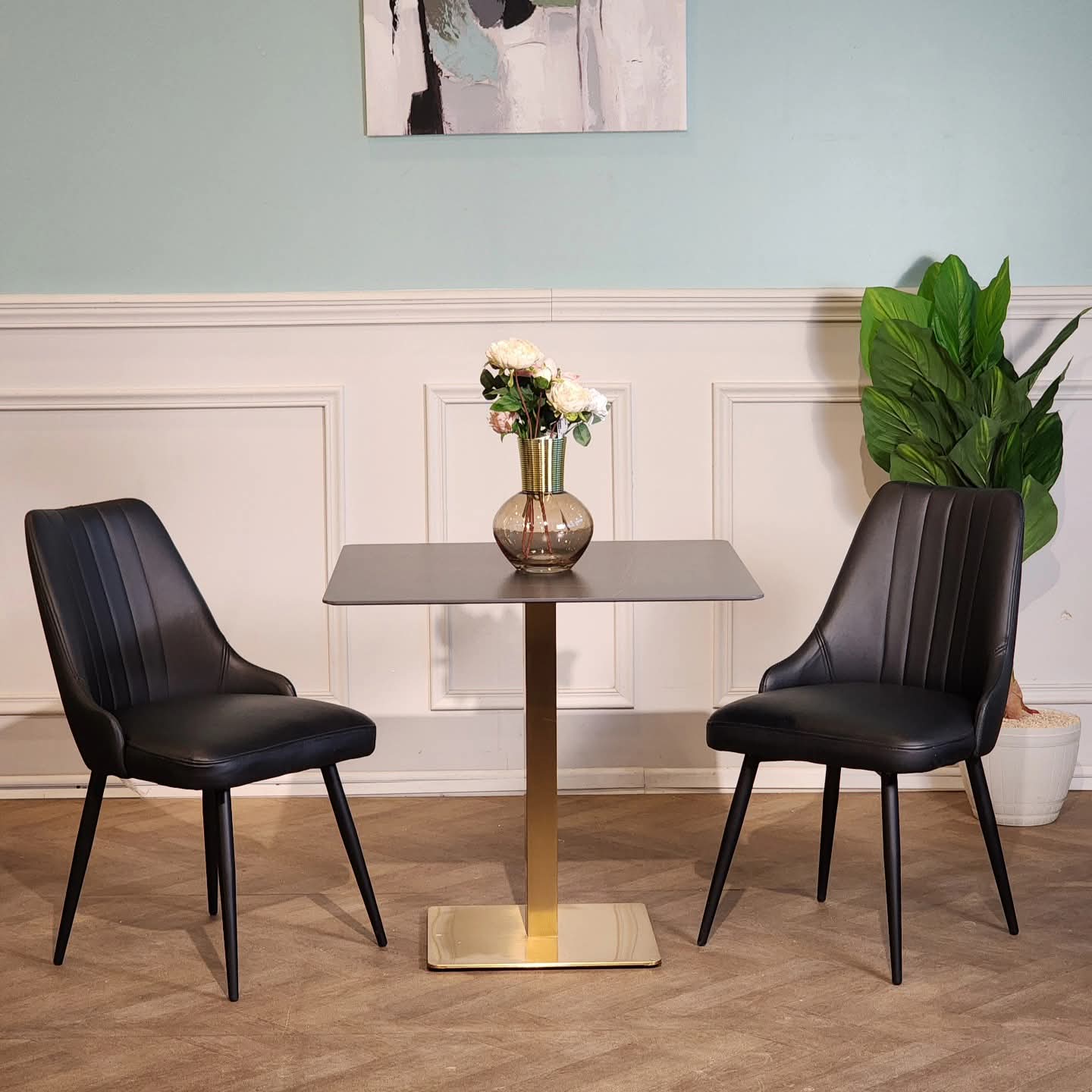 Son pied central doré apporte une note de sophistication et une stabilité parfaite, idéale pour une salle à manger, un bureau ou un espace café.