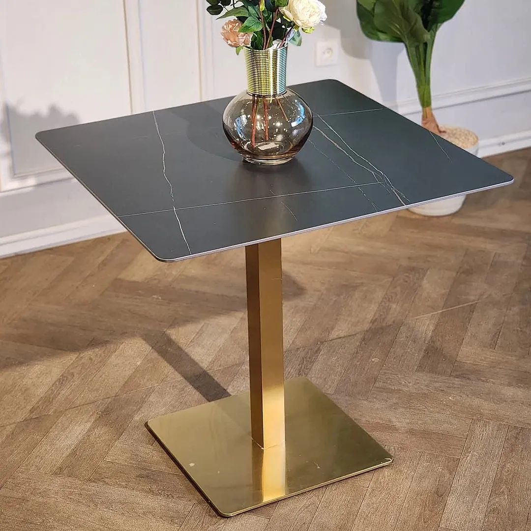 Apportez une touche moderne et luxueuse à votre intérieur avec cette table carrée 80×80 cm au plateau en quartz artificiel raffiné.