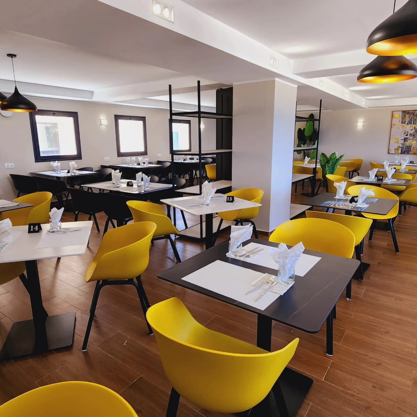 Son plateau élégant, disponible en blanc, noir ou gris, offre une surface résistante et facile d’entretien, parfaite pour une salle à manger, un bureau, un café ou un restaurant.