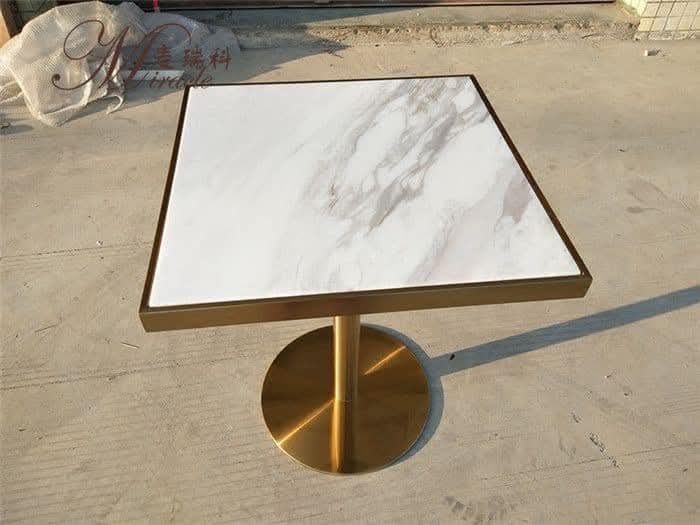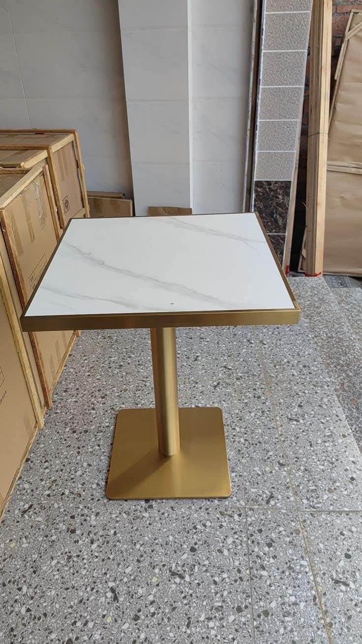 Apportez une touche de luxe moderne à votre intérieur avec cette table carrée en quartz artificiel. Son plateau élégant, rehaussé d’une bordure dorée raffinée, repose sur un pied central doré au design chic et contemporain.