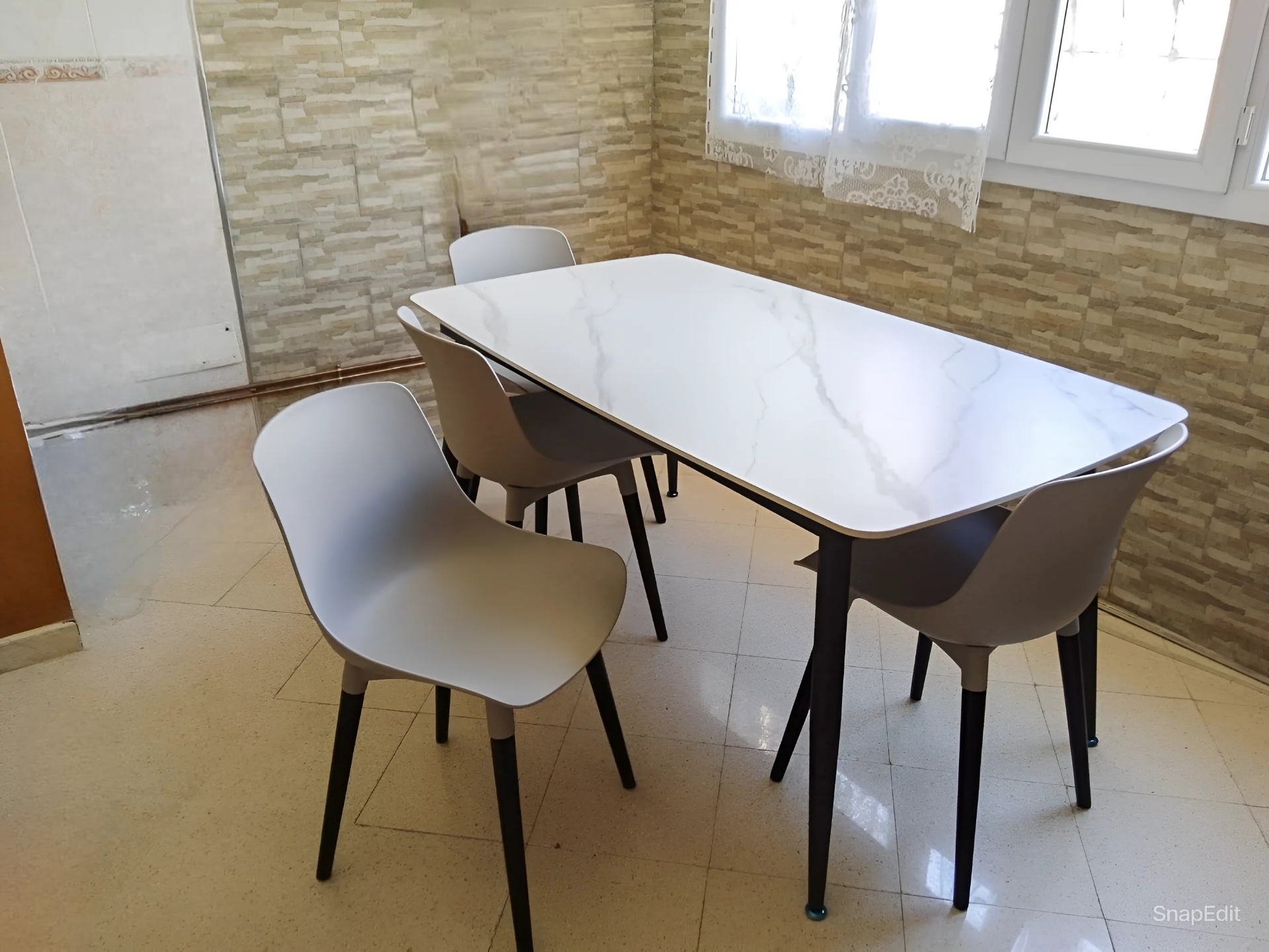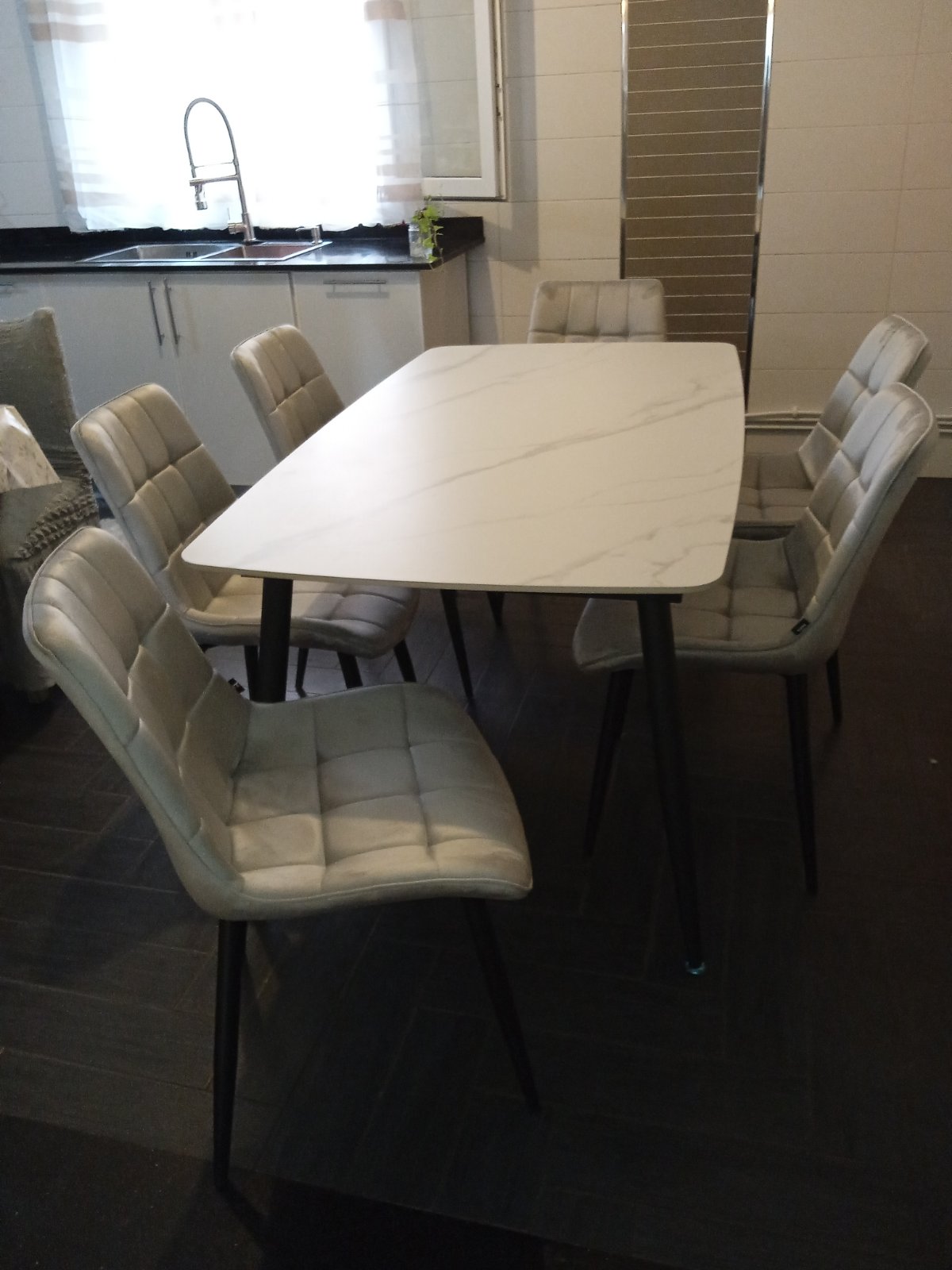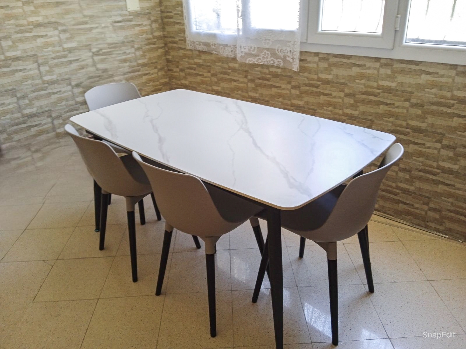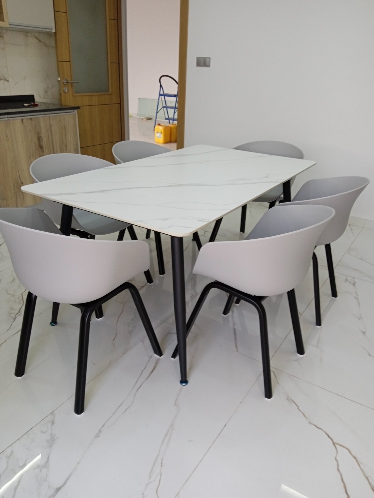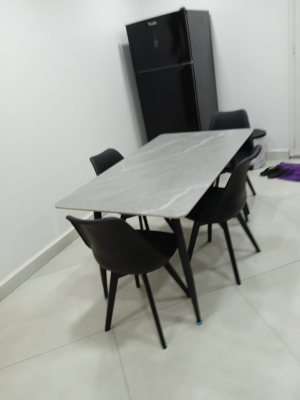 La combinaison du plateau effet roche et du piètement noir crée une table contemporaine, parfaite pour les intérieurs minimalistes, industriels ou élégants.