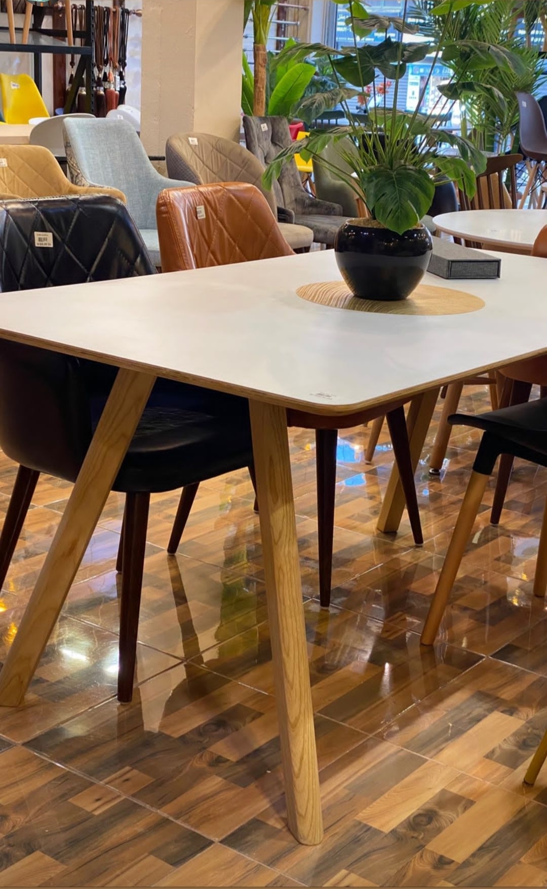 Les pieds en bois de chêne massif offrent stabilité et charme naturel, idéals pour une salle à manger moderne et conviviale.