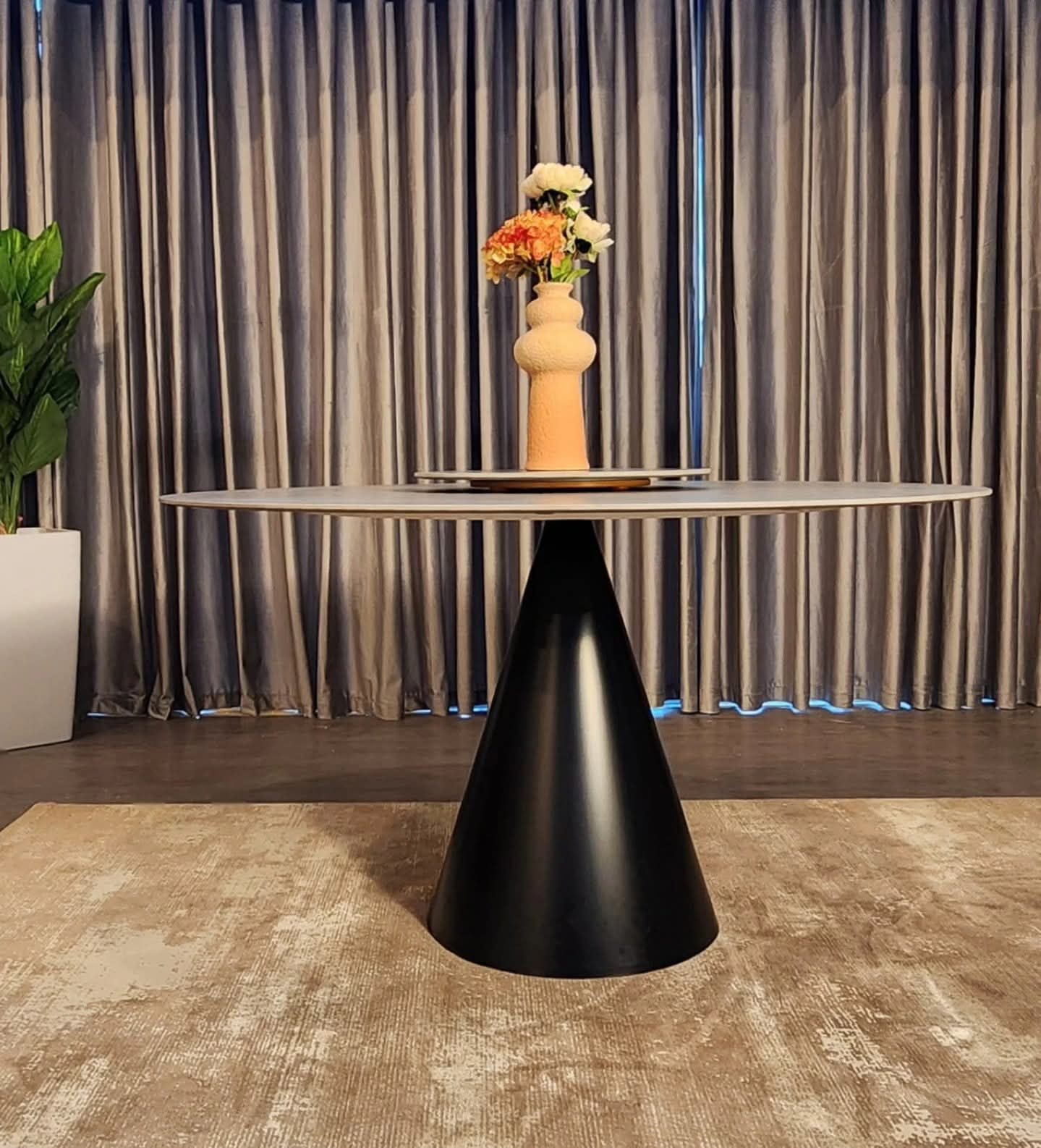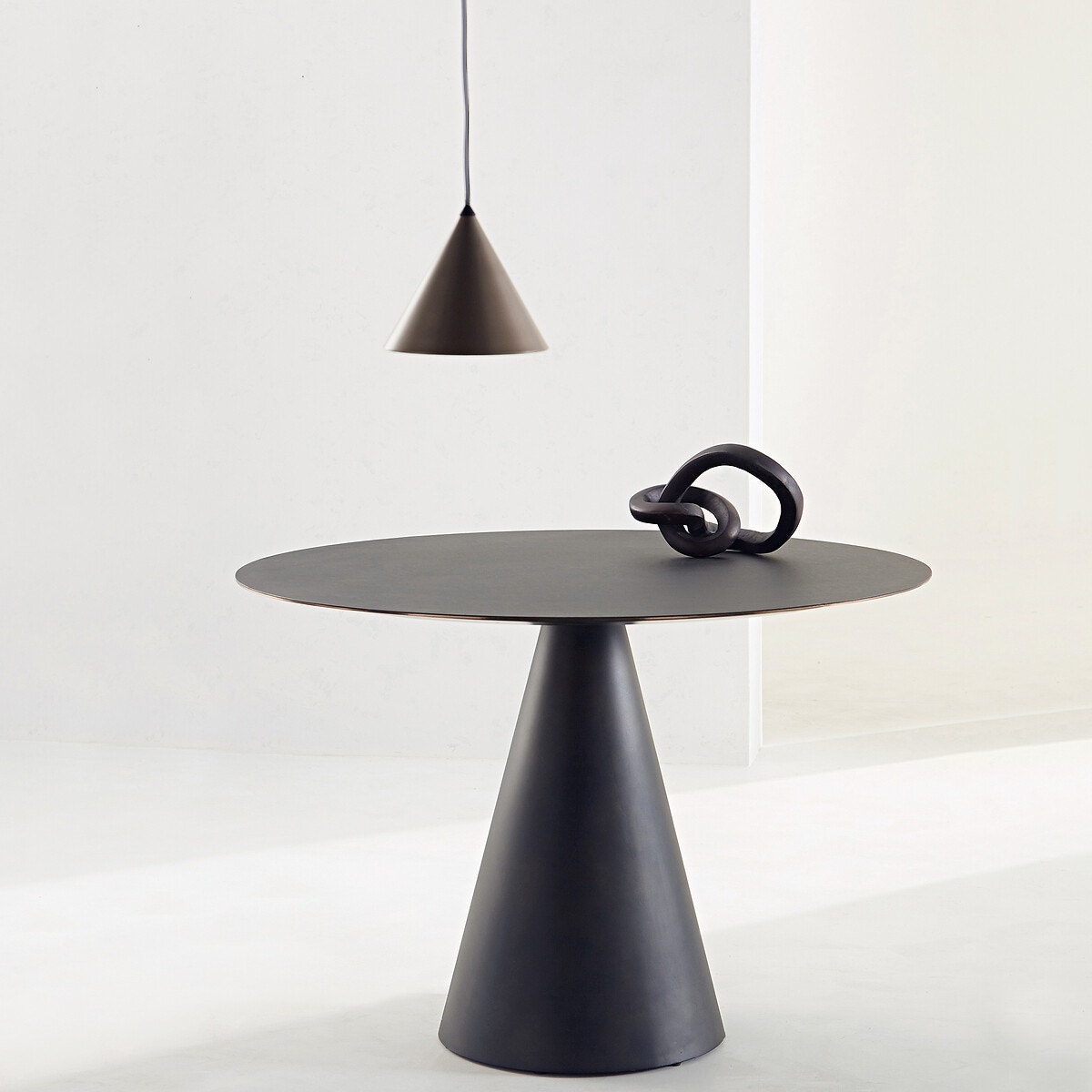 Le pied conique, proposé en noir ou beige, apporte une touche moderne et élégante tout en garantissant une excellente stabilité.