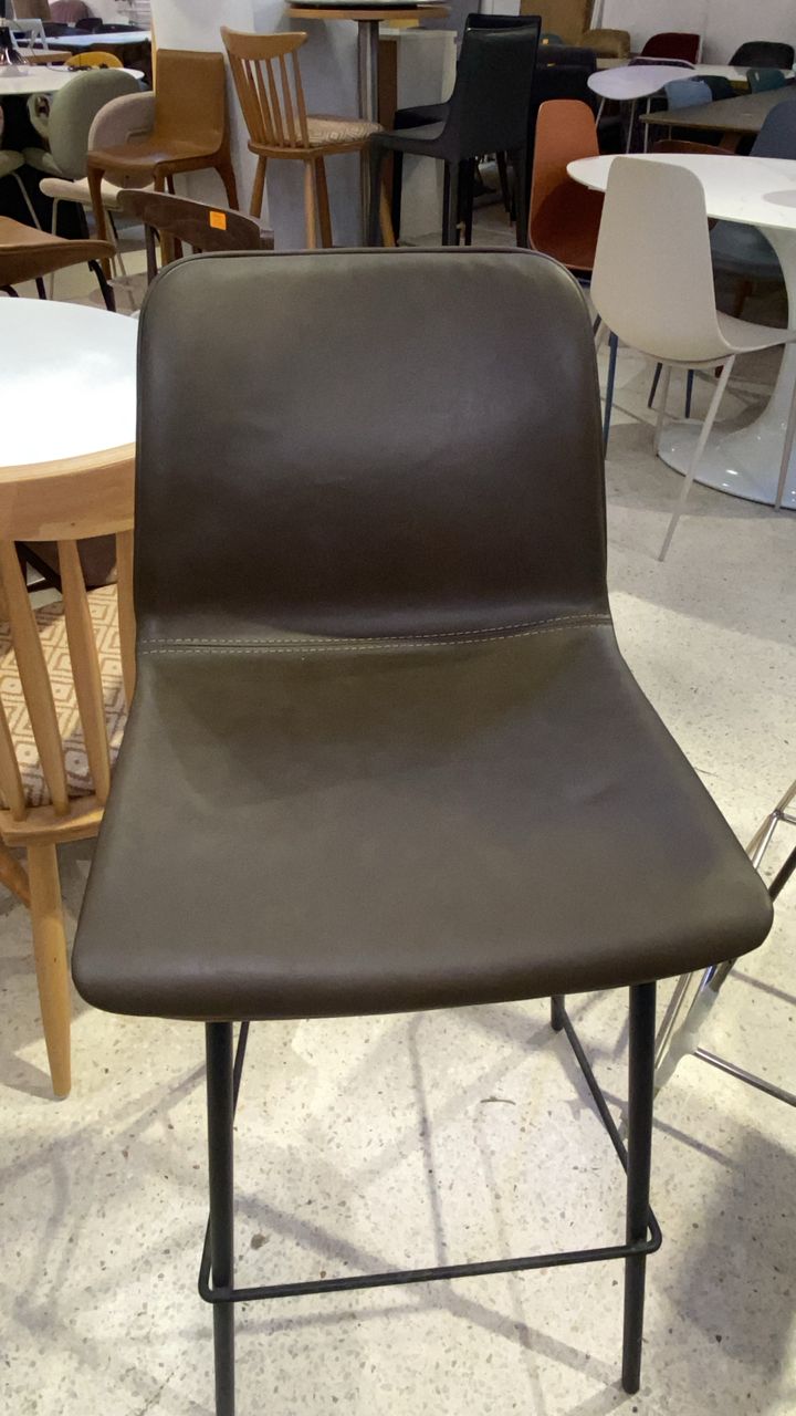 Donnez du caractère à votre espace avec notre tabouret de bar au design industriel. Alliant l’aspect noble du simili-cuir vieilli à la robustesse du métal noir, cette assise est la pièce maîtresse idéale pour un îlot central de cuisine, un bar ou un espace de restauration professionnel.